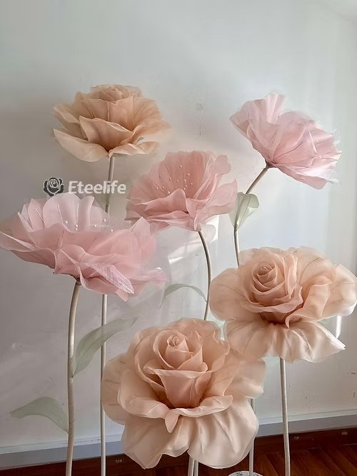 Our stunning giant flower decor has a beautiful shape and excellent workmanship. It can be disassembled at will for easy transportation. One person can complete the assembly. The height of the liftable base can be adjusted arbitrarily. The flower stem of the aluminum-plastic tube can be bent into the desired shape,outdoor waterproof.