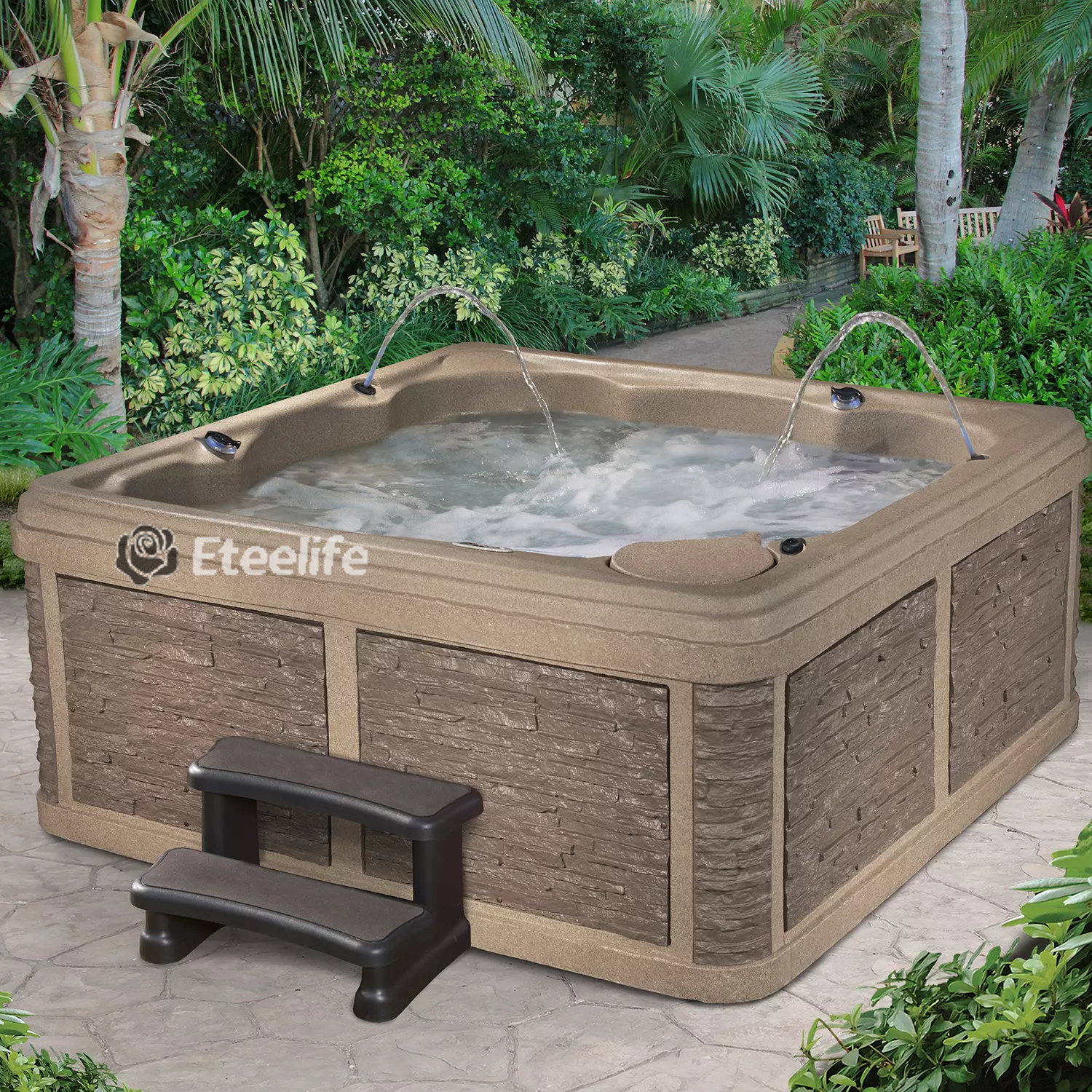 Enjoy the soothing hot water as you are surrounded by bubble jets, with 5 of your closest friends. It has an easy-to-use control panel that activates the 170 high-powered bubble jets that surround the interior of the spa, giving you a beautiful and relaxing massage.