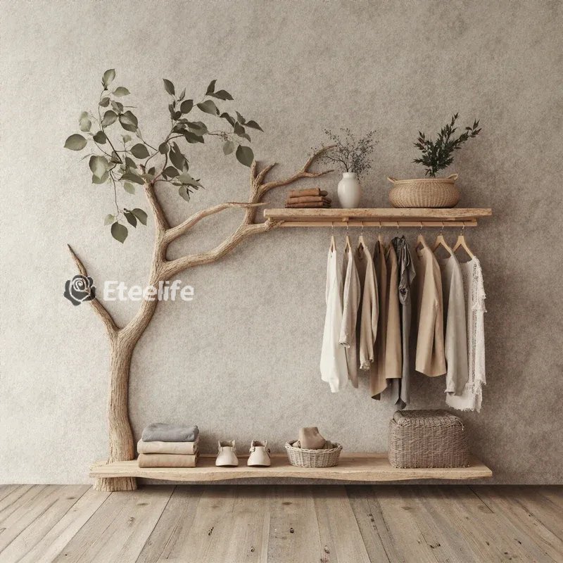 Bring a fresh and creative touch to your living space with a one-of-a-kind tree-shaped clothes and shoe rack. This product mimics the natural form of a tree, featuring soft, curving branches that add a stunning, unique element to any room.