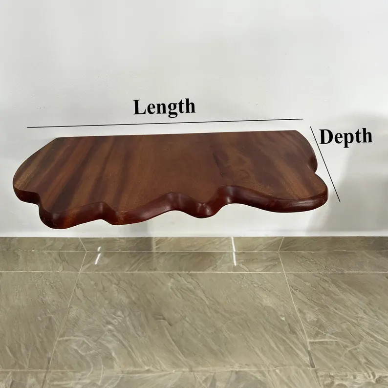 This bracketless floating shelves wood hand carving is a set of a gorgeous floating shelves on wall art that will add a touch of natural beauty and elegant functionality to your décor. These shelves, which are made from premium solid wood, have a live edge design that brings out the natural beauty of the wood grain.