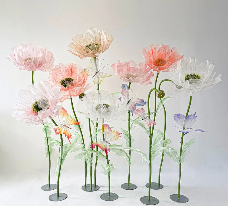 Our stunning giant flower decor has a beautiful shape and excellent workmanship. It can be disassembled at will for easy transportation. One person can complete the assembly. The height of the liftable base can be adjusted arbitrarily. The flower stem of the aluminum-plastic tube can be bent into the desired shape,outdoor waterproof.