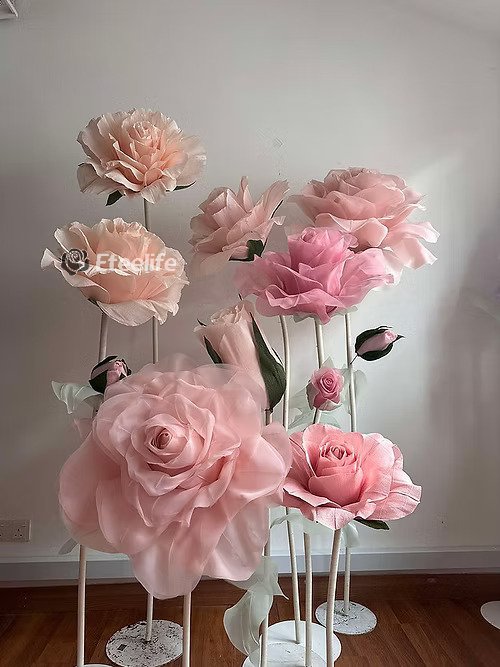 Our stunning giant flower decor has a beautiful shape and excellent workmanship. It can be disassembled at will for easy transportation. One person can complete the assembly. The height of the liftable base can be adjusted arbitrarily. The flower stem of the aluminum-plastic tube can be bent into the desired shape,outdoor waterproof.