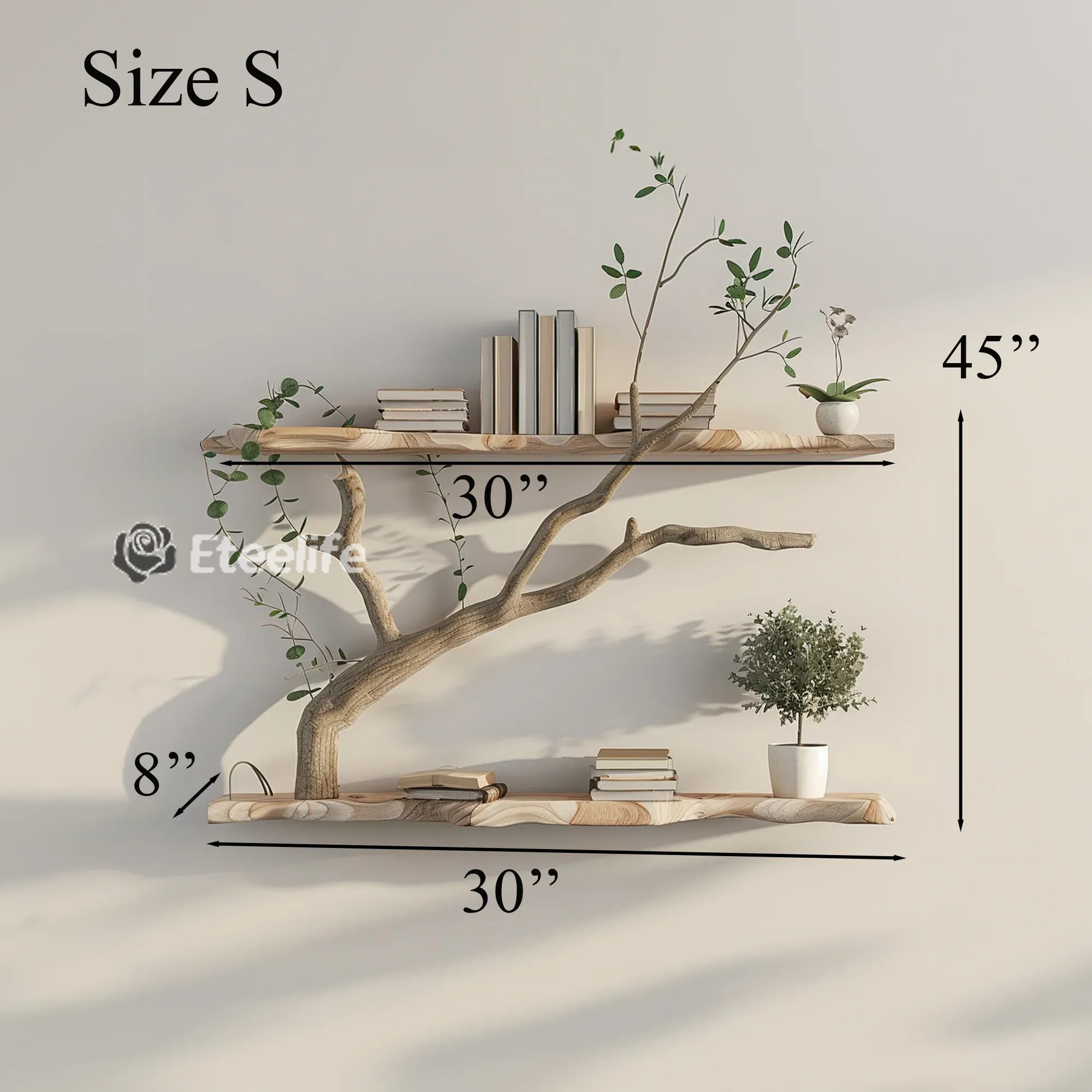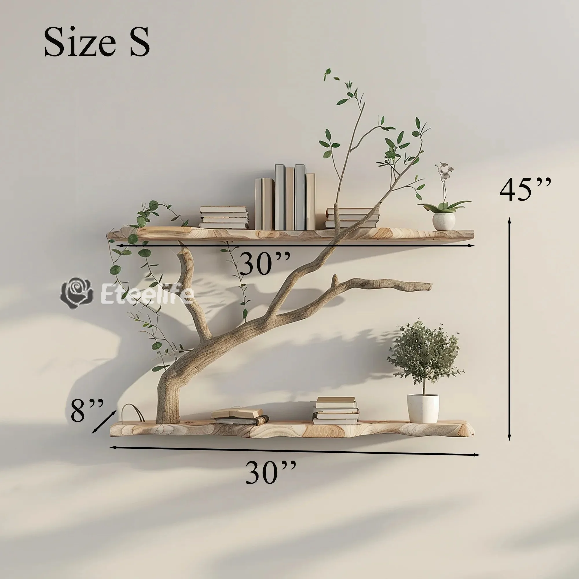 Tree branch floating corner shelf not only bring beauty but also enhance the utility of your space. You can creatively arrange books, decorations, personal items or even plants, taking advantage of every space effectively.