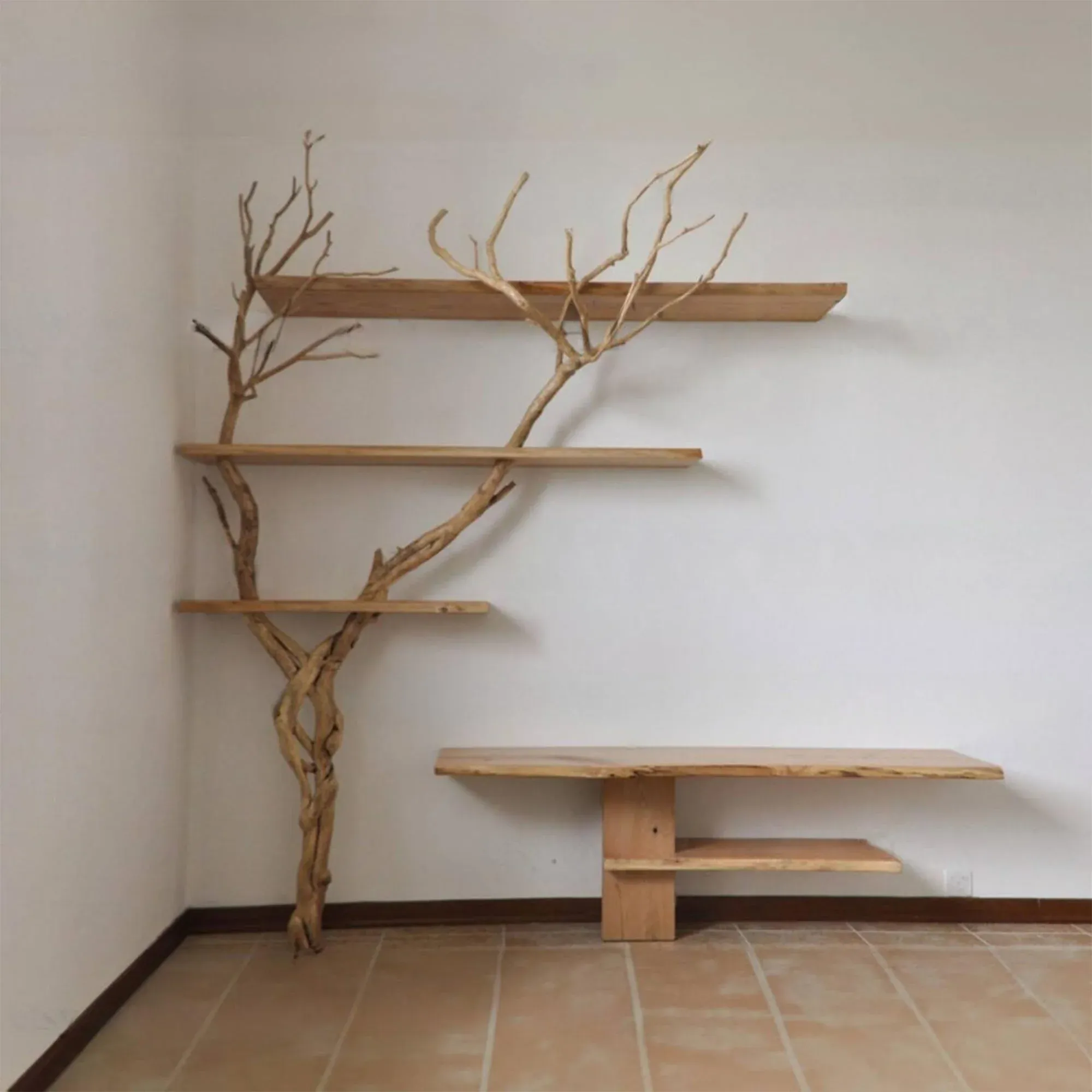 Easy Installation: With a simple installation system, users can quickly install Floating Shelves themselves without needing professional help. The included detailed instructions help you enjoy your new space immediately without any difficulty. Corner tree branch shelf are not only a common interior product but also a symbol of creativity and sophistication in interior decoration. Let them make your space more beautiful and modern than ever!