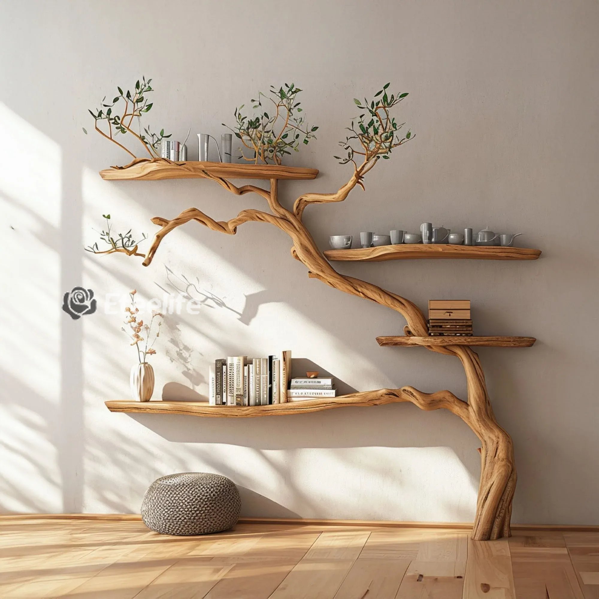 Unique Design: Tree floating shelf is not just an ordinary storage solution but also a unique work of art. With their floating design, they create a strong impression and add a focal point to any room. You can easily customize the placement and number of shelves to create a space that is personal and reflects your own style.