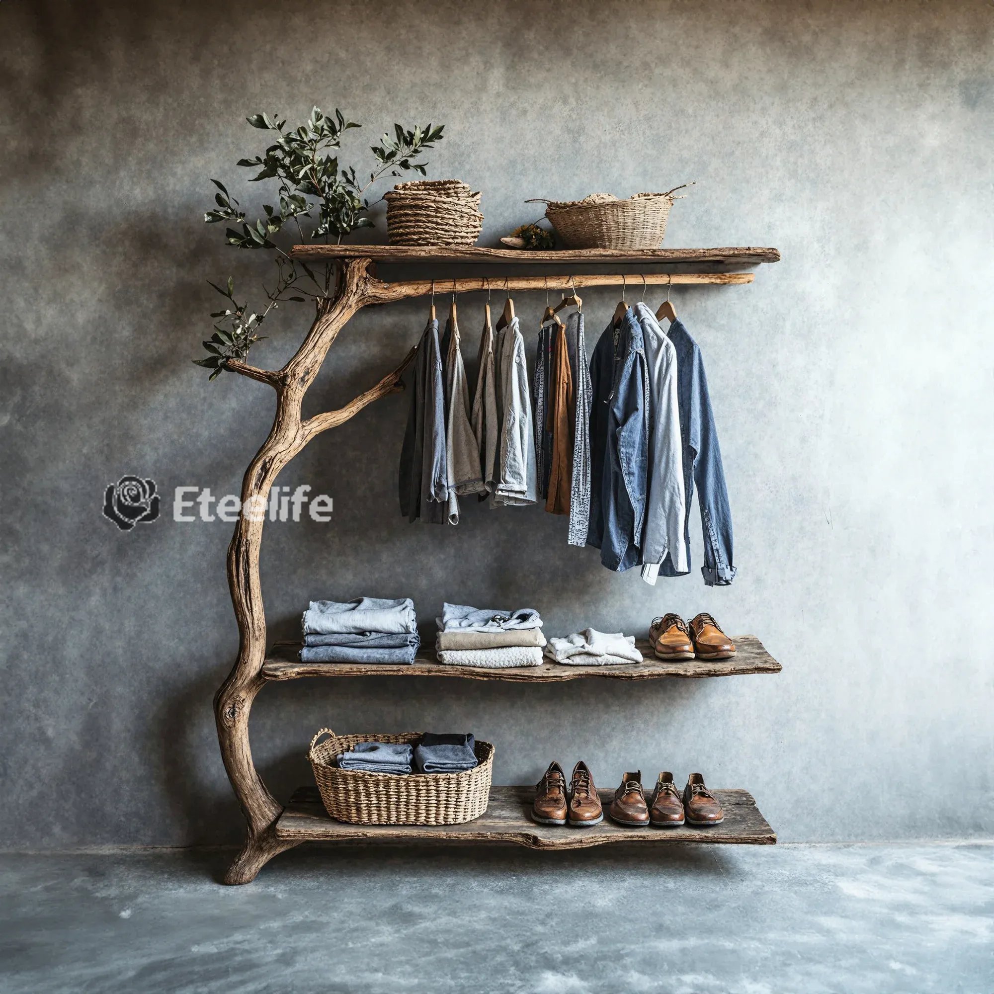 Bring a fresh and creative touch to your living space with a one-of-a-kind tree-shaped clothes and shoe rack. This product mimics the natural form of a tree, featuring soft, curving branches that add a stunning, unique element to any room.