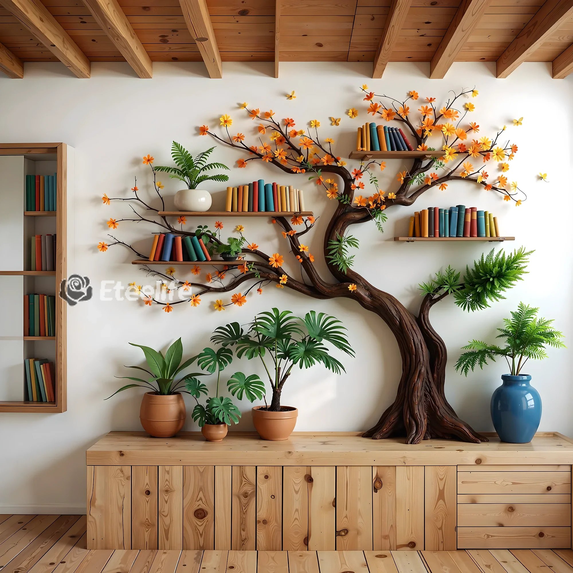 MATERIALS AND COLORS Popular materials include natural wood. Finishes can range from natural wood stains to vibrant colors, depending on the desired aesthetic. FUNCTION These bookshelves can serve as a focal point in a room while also providing practical storage solutions. They are often used in children's rooms, libraries or creative spaces. UTILITIES Tree-shaped bookshelves bring elegance and warmth to the home, bring nature closer to the family, you can arrange decorations and personal items to make the most of every space. EASY TO INSTALL With the design of skilled workers, users can install it easily and quickly without the help of experts. With the included user guide, you'll easily enjoy your new space without any problems. If there are any difficulties or problems during the installation process, we are always ready to support and stand by your side when you need them.