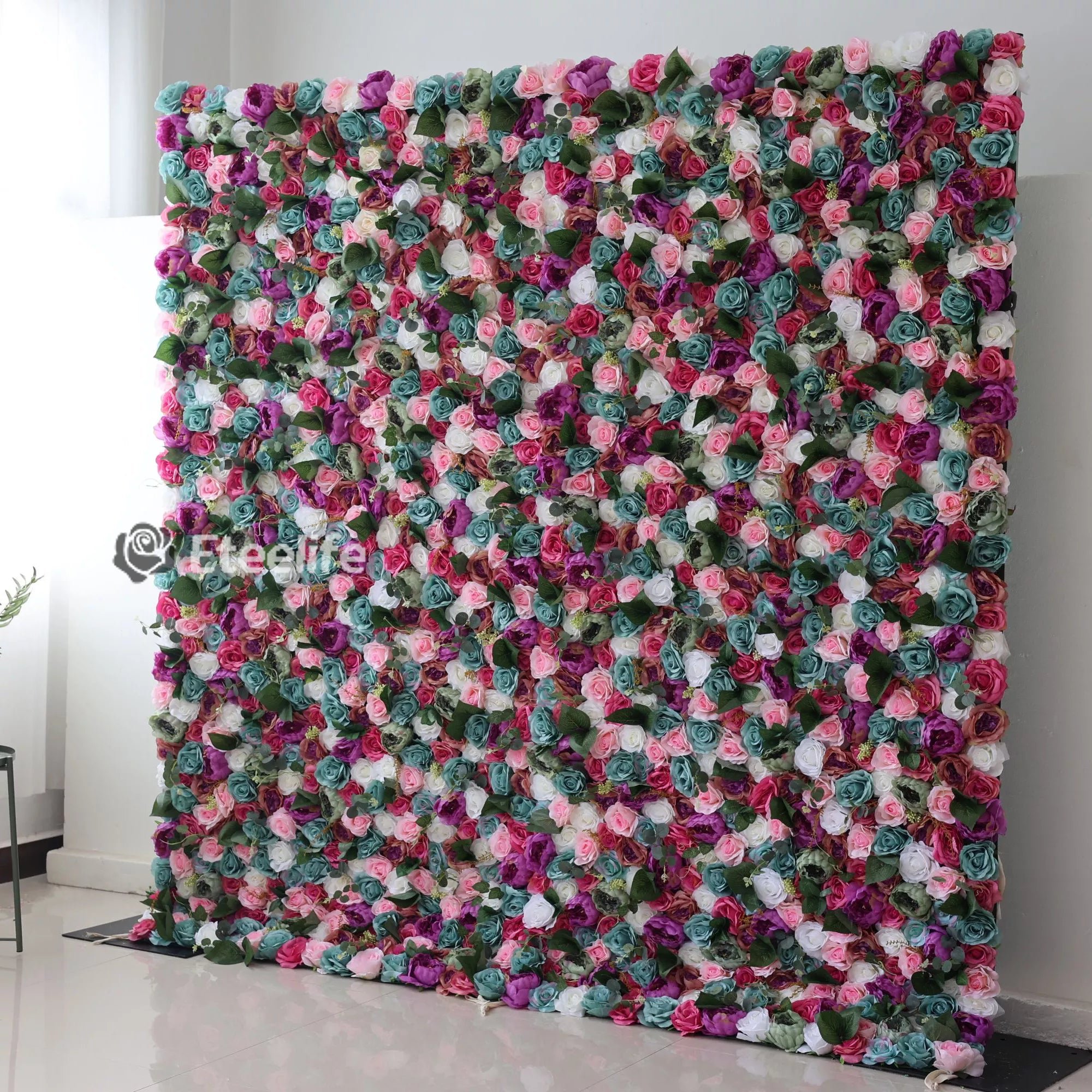 Romance in Every Petal: This wall, adorned with a medley of colorful blooms, serves as a perfect backdrop for romantic events, whimsical settings, or any environment seeking a touch of enchantment.