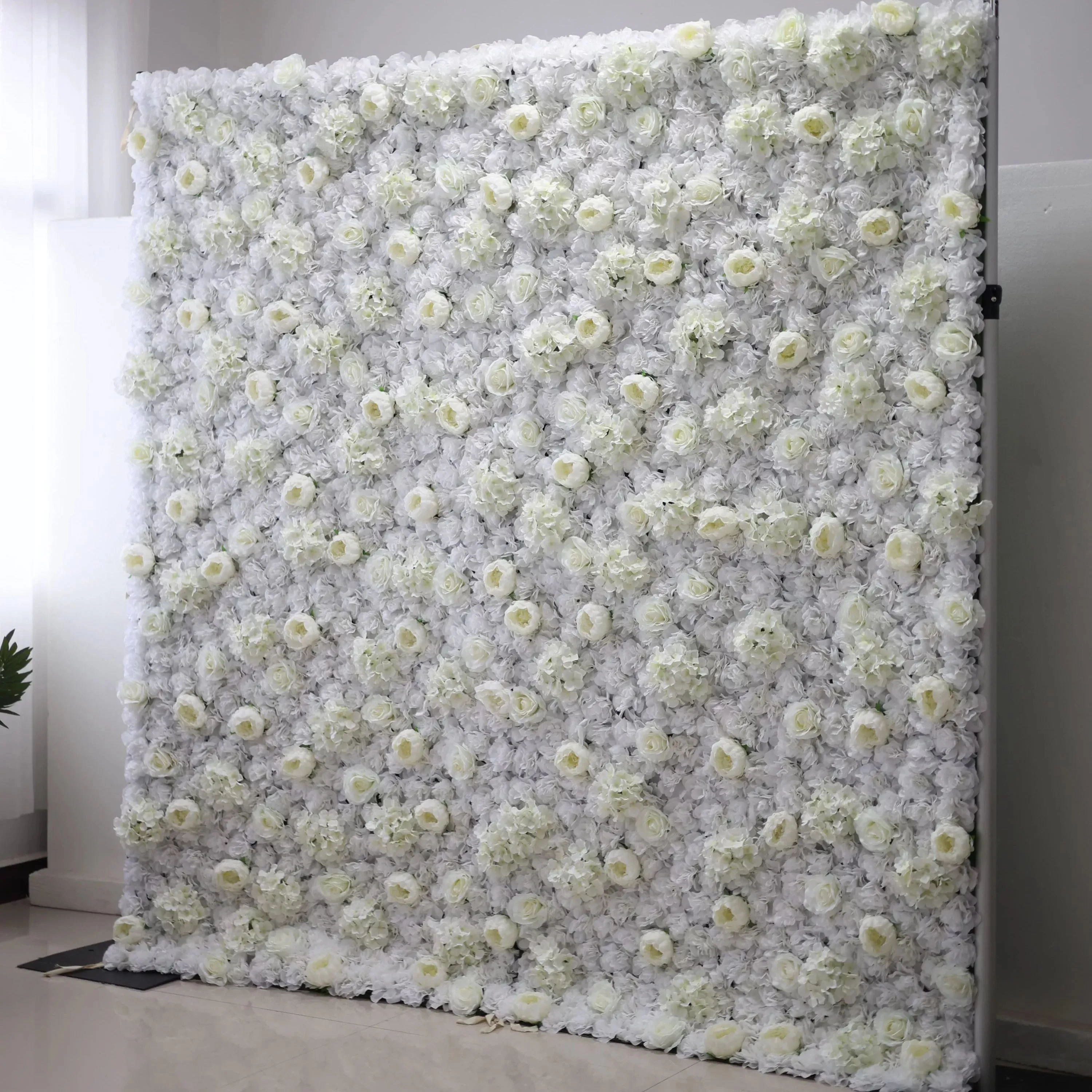 Roll Up Fabric Artificial White Flower Wall Wedding Backdrop, Floral Party Decor, Event Photography-VF-006