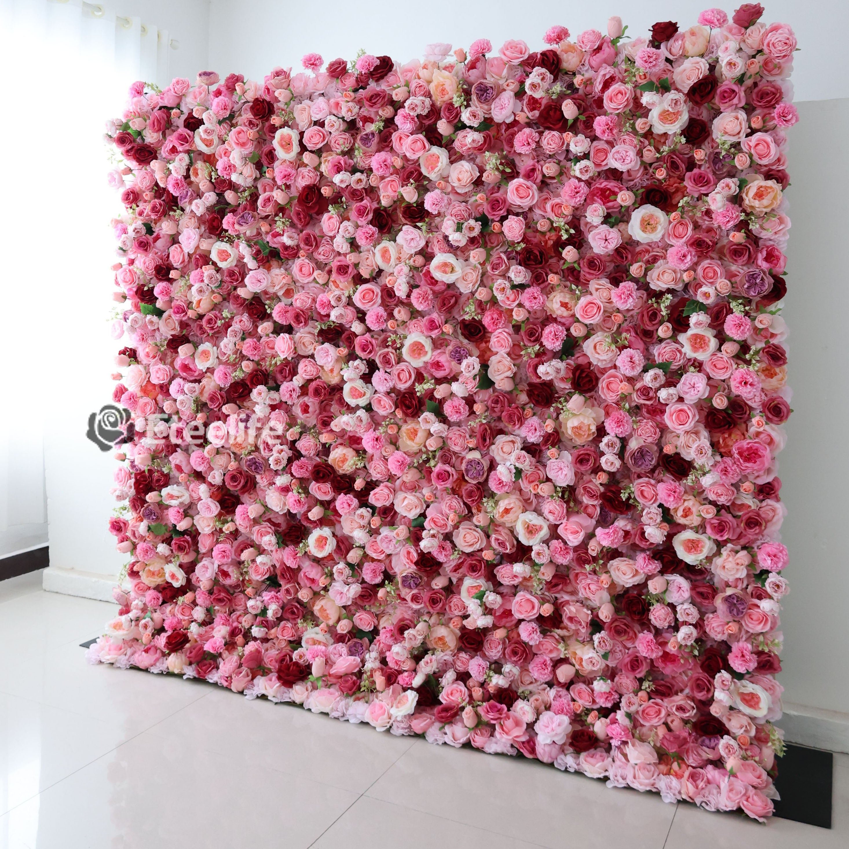 Roll Up Fabric Artificial Flower Wall Wedding Backdrop, Floral Party Decor, Event Photography-VF-344