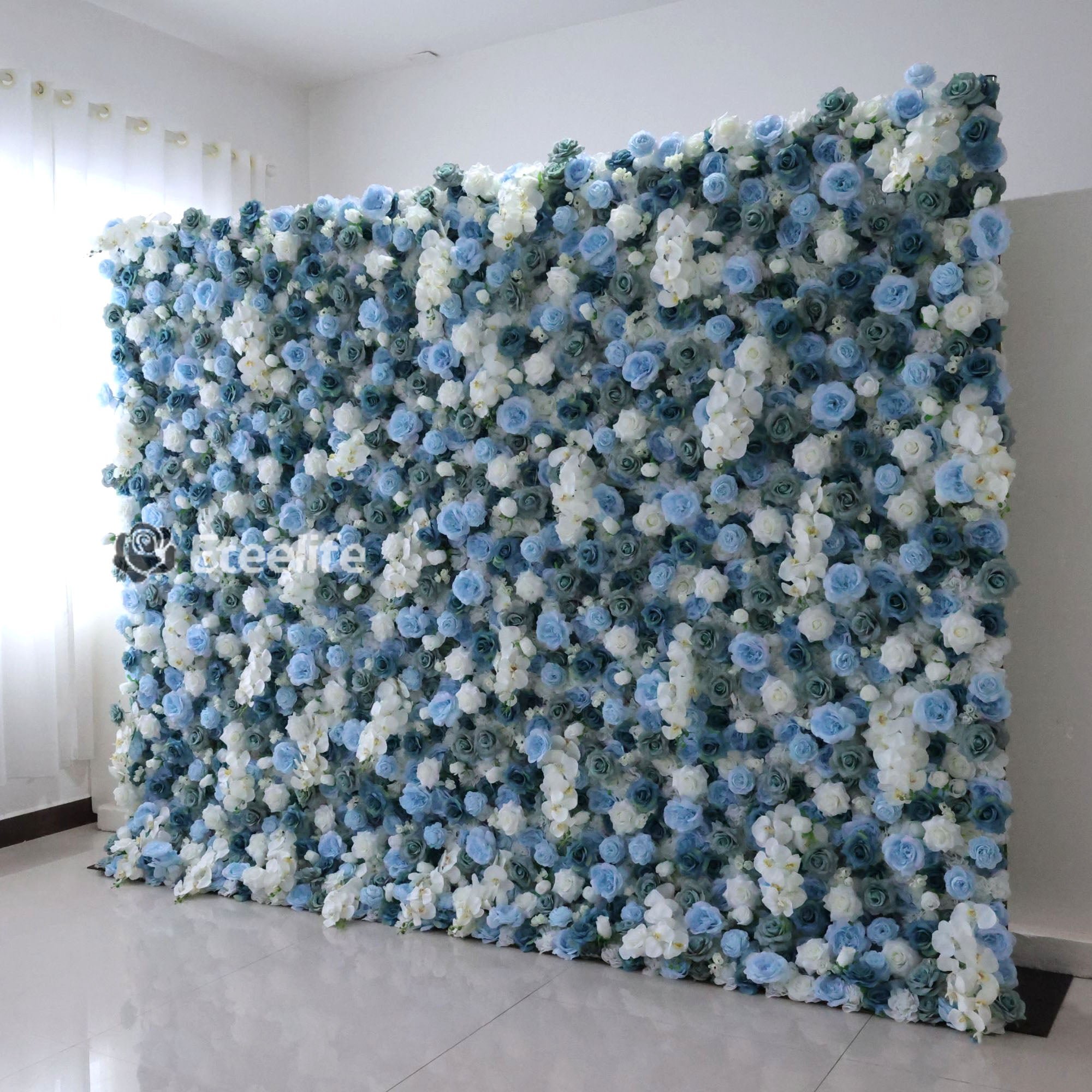 Roll Up Fabric Artificial Flower Wall Wedding Backdrop, Floral Party Decor, Event Photography-VF-348
