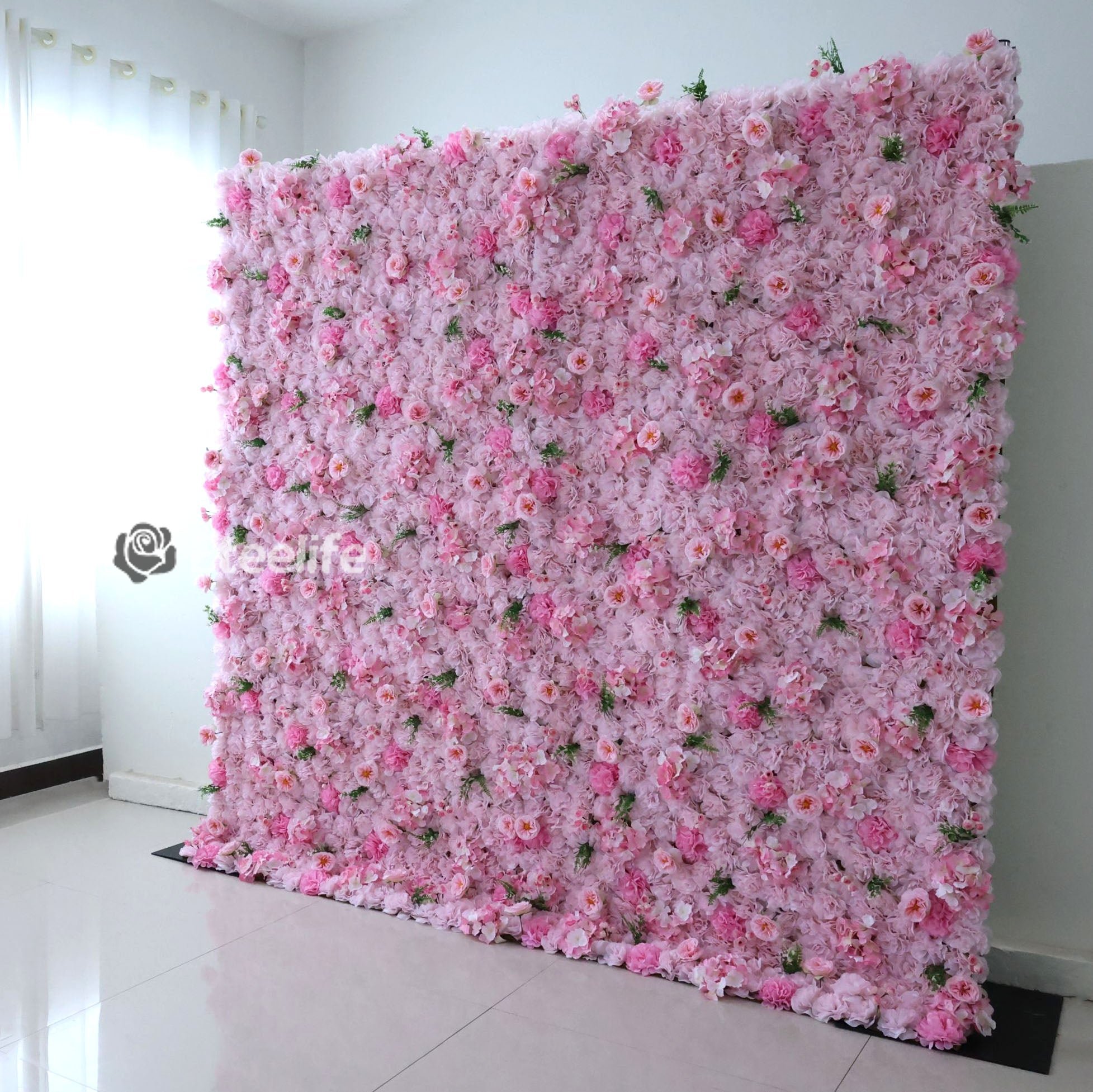 Roll Up Fabric Artificial Flower Wall Wedding Backdrop, Floral Party Decor, Event Photography-VF-350