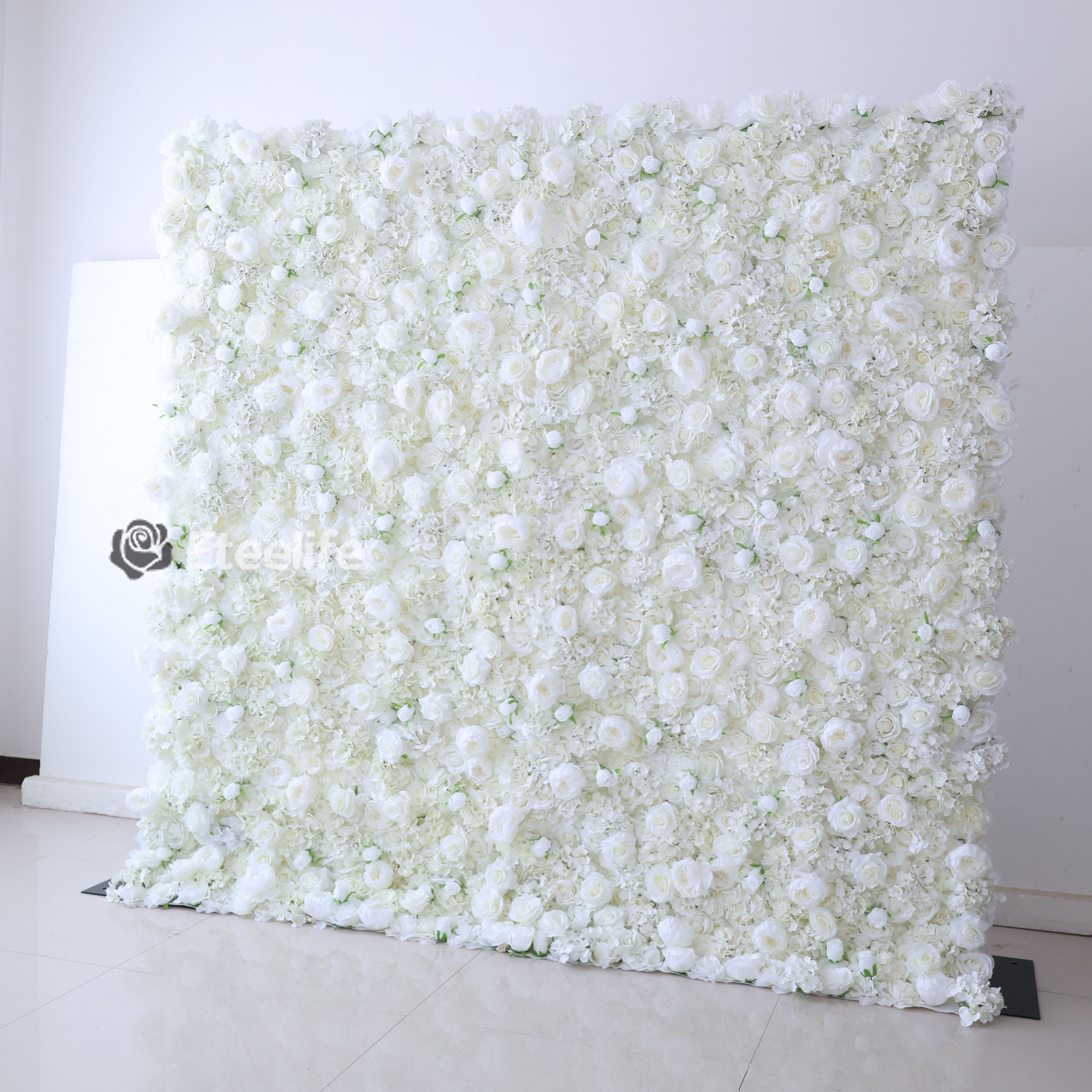 Roll Up Fabric Artificial Flower Wall Wedding Backdrop, Floral Party Decor, Event Photography-VF-377