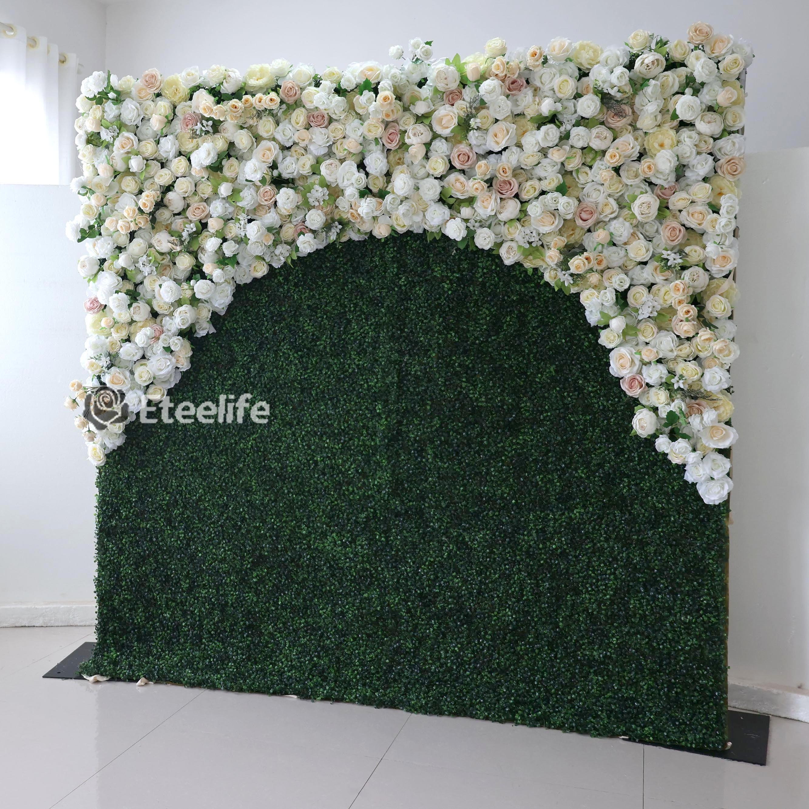 Roll Up Fabric Artificial Flower Wall Wedding Backdrop, Floral Party Decor, Event Photography-VF-388