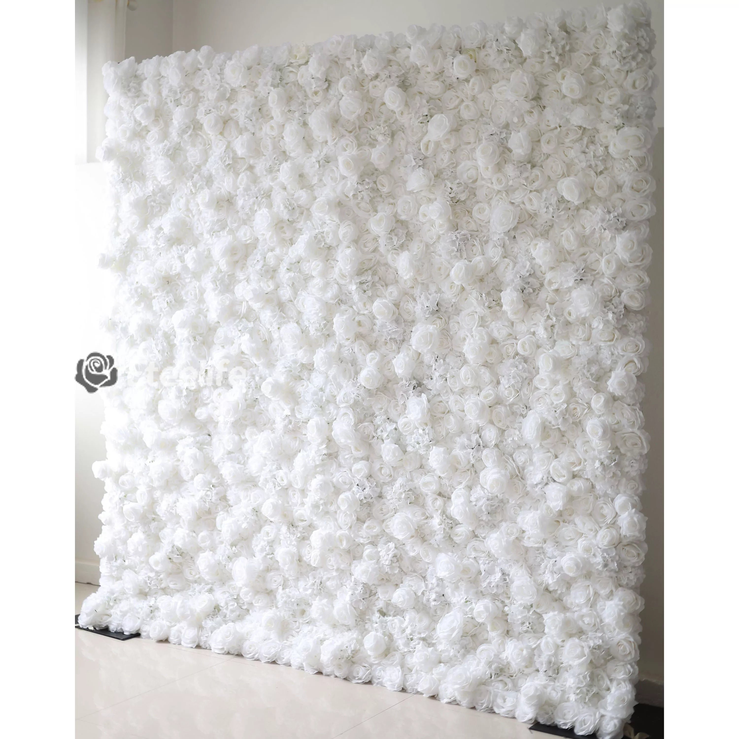 Roll Up Fabric Artificial Pure White Flower Wall Wedding Backdrop, Floral Party Decor, Event Photography-VF-051-3