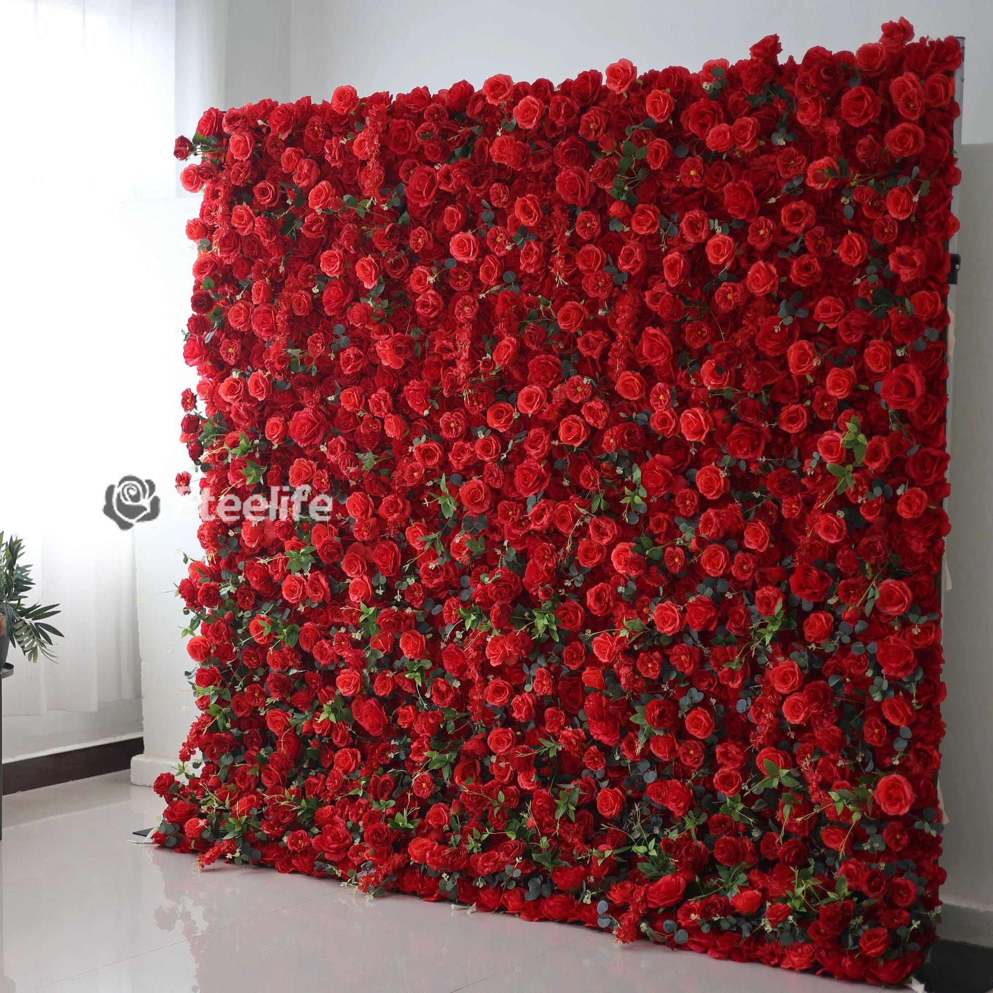 ValarFlowers Red Rose Rapture: Dive into an ocean of passion with this luxuriant wall of blooming red roses. Every rose whispers tales of romance, making it a perfect backdrop for weddings, anniversaries, and special moments that celebrate love.