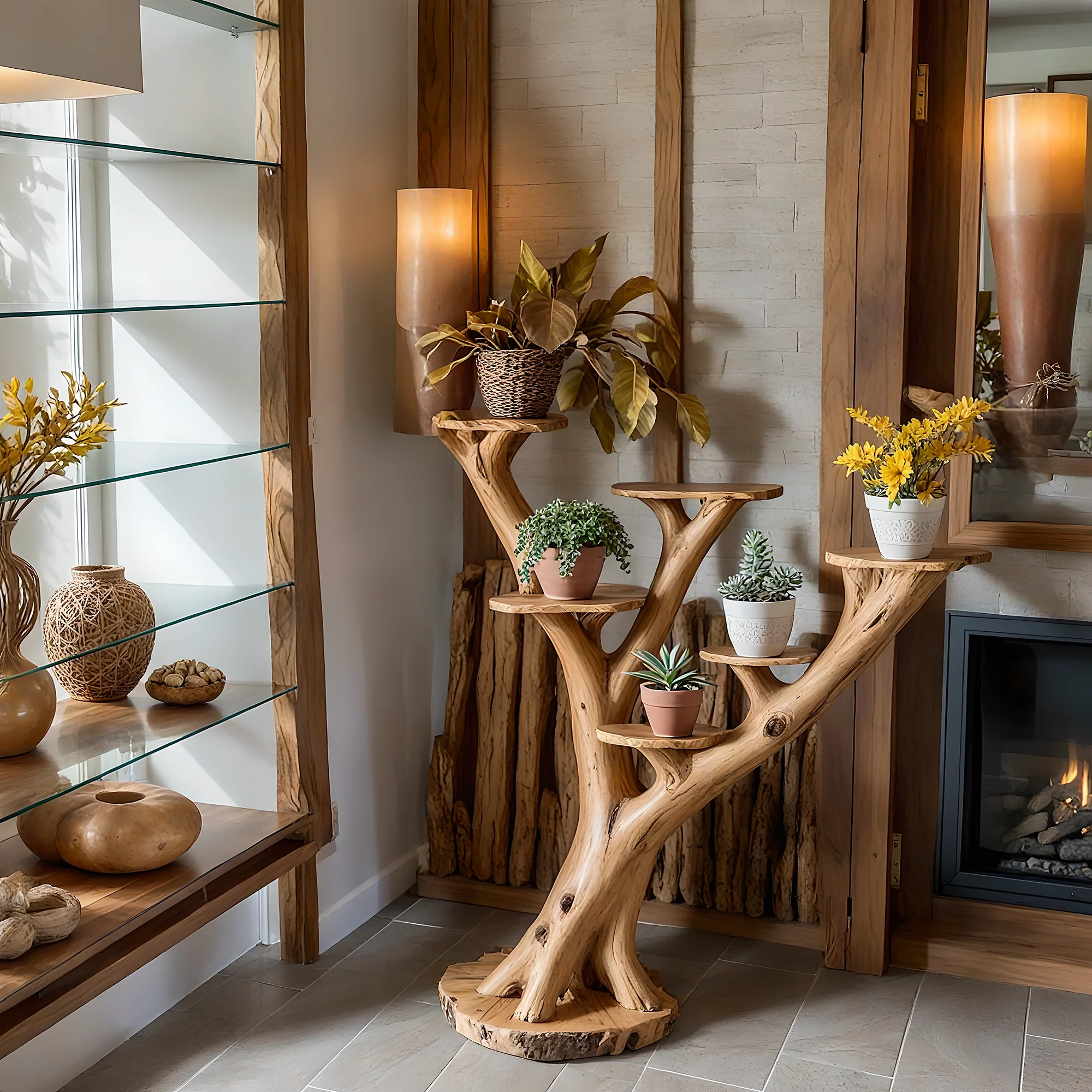 The artistic bonsai shelf is a creative product, suitable for those who love nature and want to bring natural beauty into their living space. With a design simulating a real tree trunk, this product is not only a piece of furniture but also a unique work of art, creating a subtle highlight for any space.