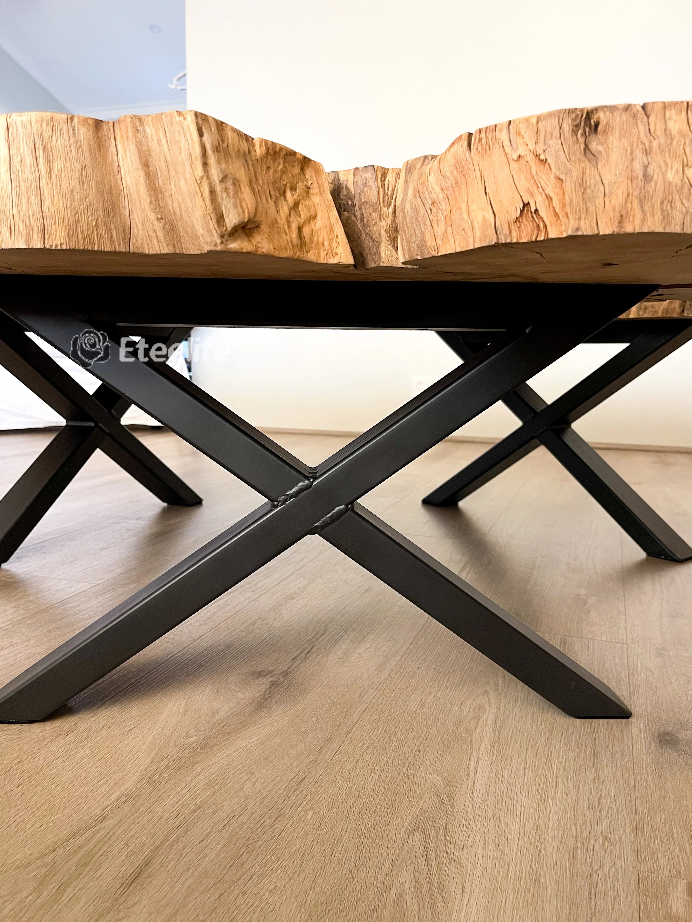 Introducing ZÉLIE, a striking coffee table made from a unique, aged trunk. The natural wood with intricate grain patterns tells a story of time and endurance, creating a focal point that is both bold and timeless.